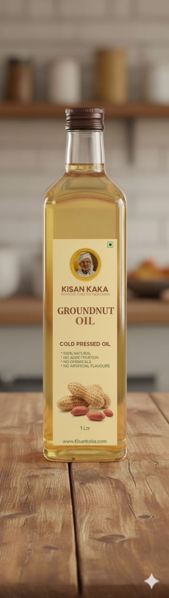 Experience the authentic taste and health benefits of 100% pure Cold Pressed Groundnut Oil, extracted using the traditional wooden ghani (kachi ghani) method.